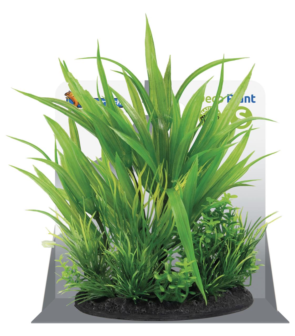Mit dieser realistischen Kunststoffpflanze auf Felsen können Sie Ihr Aquarium einfach und pflegefrei dekorieren. Drücken Sie die Basis der Pflanze in den Aquarienboden und bewegen Sie sie hin und her, bis sie fest im Kies sitzt. Die Pflanzen und der Felsen sind naturgetreu und sinken durch den beschwerten Bodengrund.