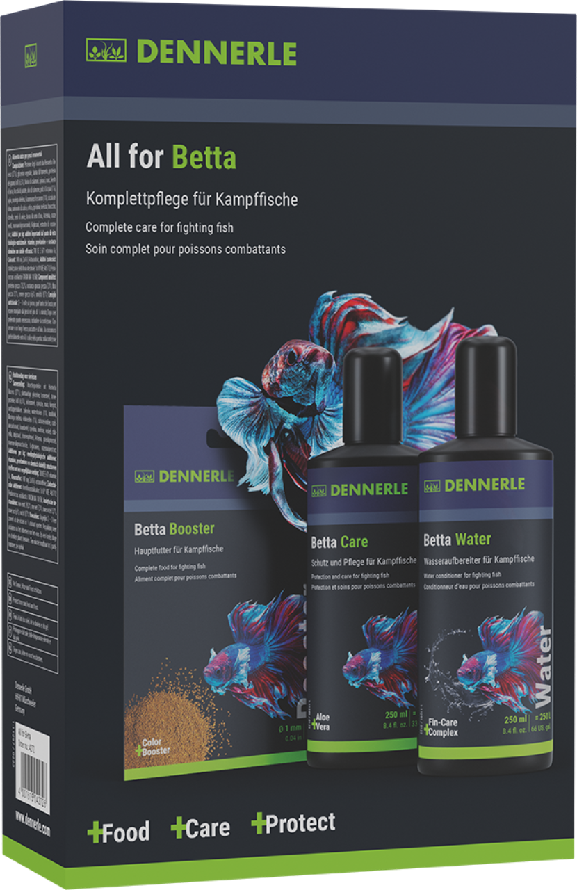 All for Betta" Bundle: Dieses Bundle bietet alles, was du für die Gesundheit und das Wohl deines Betta benötigst.Mit "Betta Care" ist ein Wasserpflegemittel, das speziell für Betta-Fische entwickelt wurde. Es enthält natürliche Humin- und Fulvosäuren so