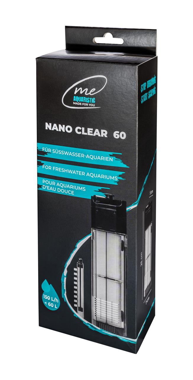 Me Nano Clear 60, Eckfilter – Zuverlässiger Filter für Nano-Aquarien Schlüsselpunkte: • Für Süßwasseraquarien bis 60 l • Pumpenleistung: 150 l/h • Stufenlos regelbarer Durchfluss • Geräuscharm & platzsparend Produktbeschreibung: Der Me Nano Clear 60, Ec