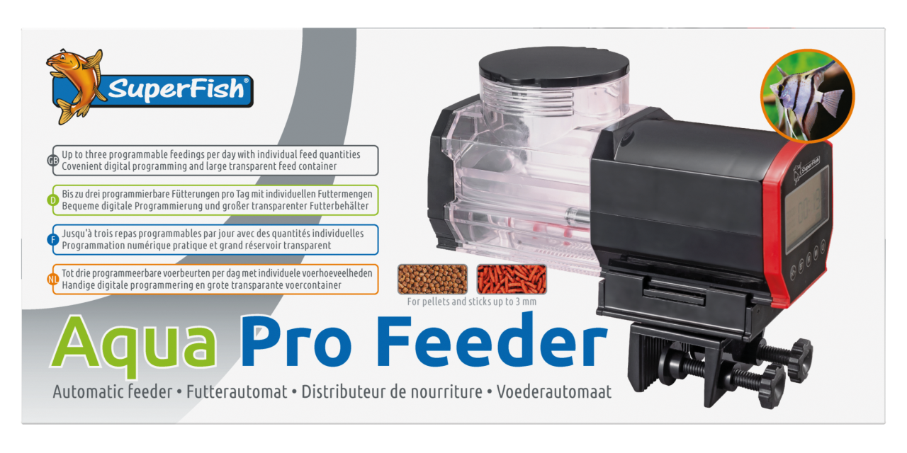 Die Schraubenradkonstruktion ist für Pelletfutter bis zu 3 mm geeignet und gewährleistet eine präzise und konstante Fördermenge. Die Futtermenge ist in einem Bereich von ±0,15 bis 10 Gramm pro Tag einstellbar, je nach spezifischem Gewicht des Futters
