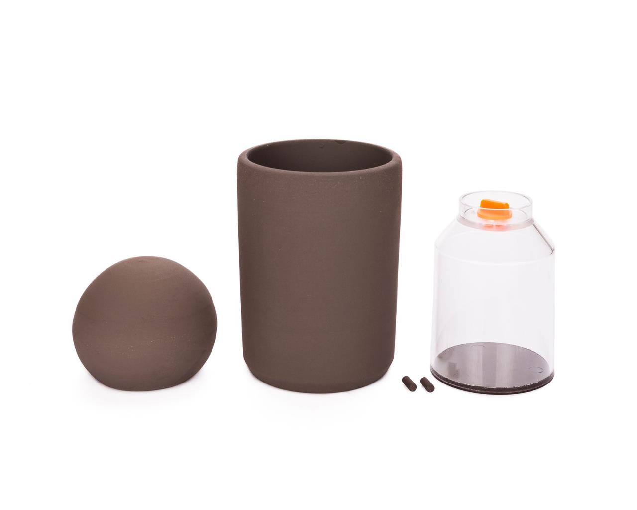 Erneuerung der Füllung: Ist die Füllung verbraucht, schwimmt der gesamte OXYDATOR – einschließlich Keramikbecher – an die Wasseroberfläche.