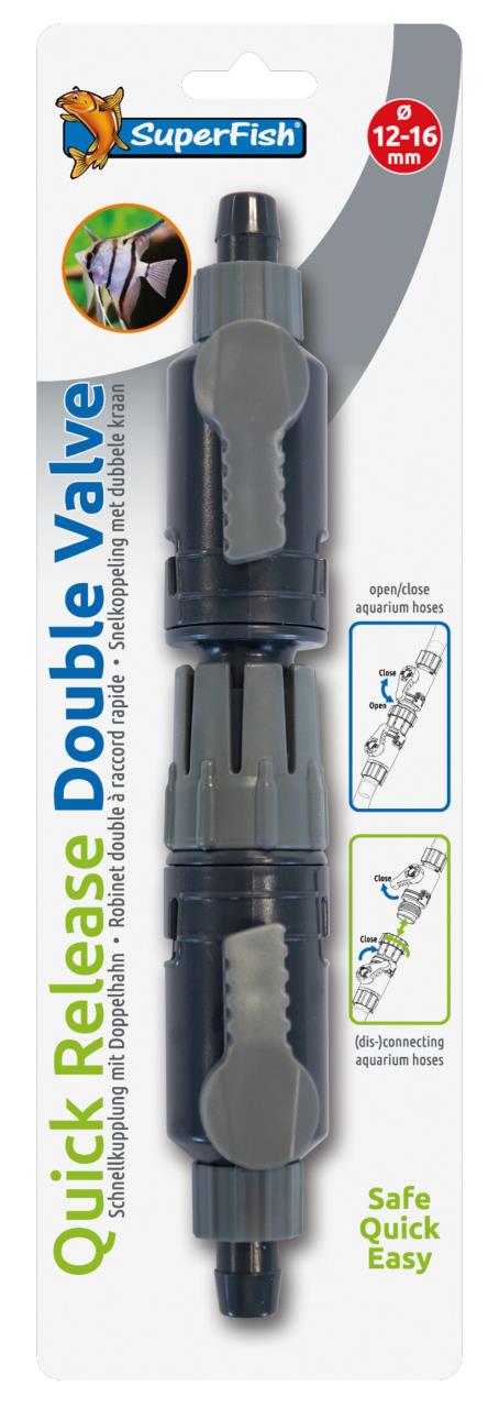 Schnellkupplung mit Doppelhahn ? Einfaches Anschließen und Trennen von Aquarienschläuchen (Außenfilter). ? Stellen Sie den Wasserfluss ein oder schließen Sie den Wasserdurchfluss für die Wartung mit den beiden Wasserhähnen. ? Erhältlich für Schlauchdurchmesser von 9-12, 12-16 und 16-22 mm. ? Verschiedene Größen von Schnellspannkranen können miteinander verbunden werden, um sie als Reduzierstück für verschiedene Schlauchdurchmesser zu verwenden. ? Geeignet für Süßwasser- und Meerwasseraquarien.