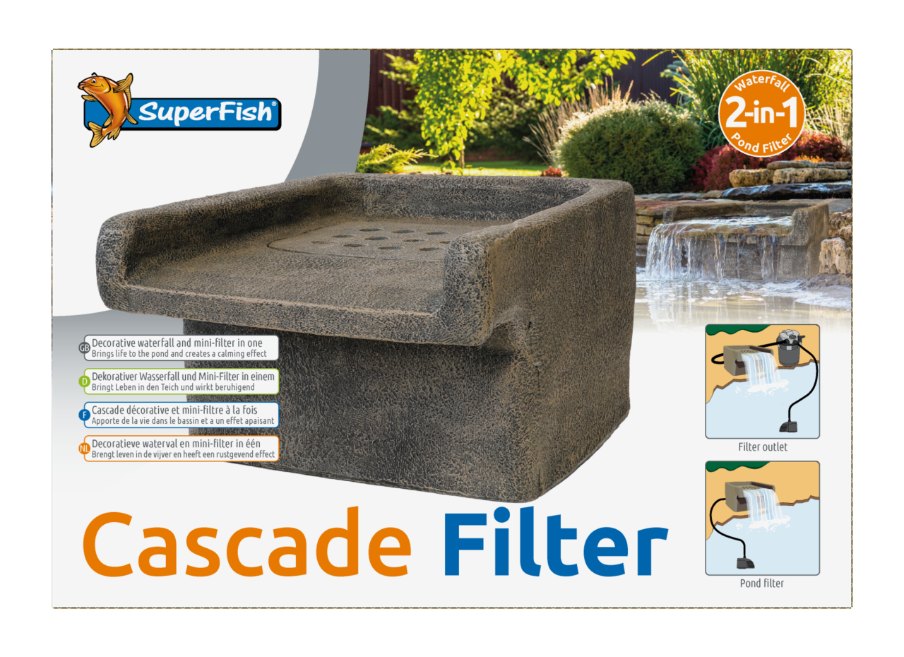Dekoratives Wasserfall-Ornament und Filter zur Platzierung am Teichrand für die Rückführung des Teichwassers von Ihrer Pumpe oder Ihrem Druckfilter ohne unansehnlichen Schlauch über den Teichrand. Der Wasserfall hat auch eine beruhigende Wirkung. Hergestellt aus einem haltbaren Kunstharz.