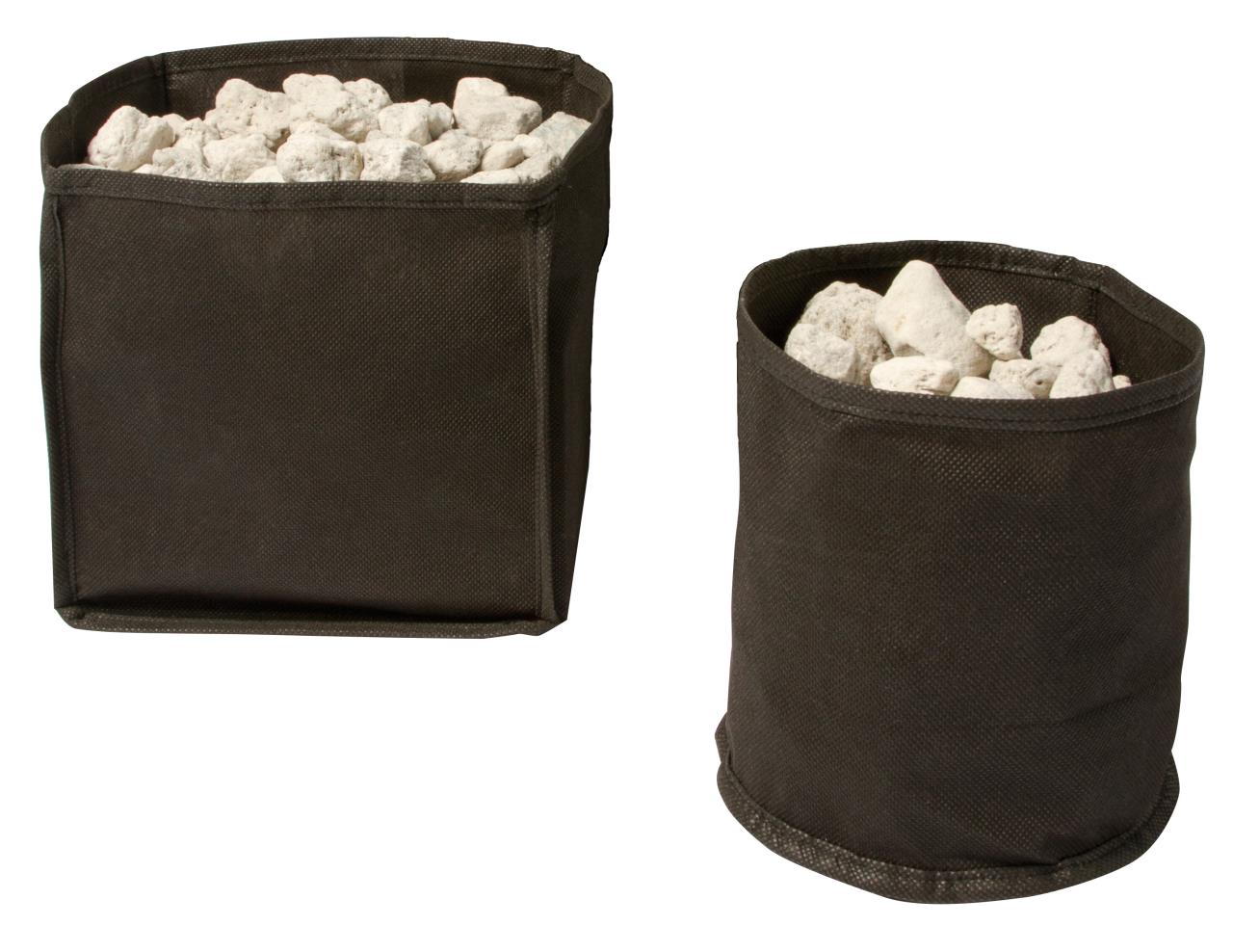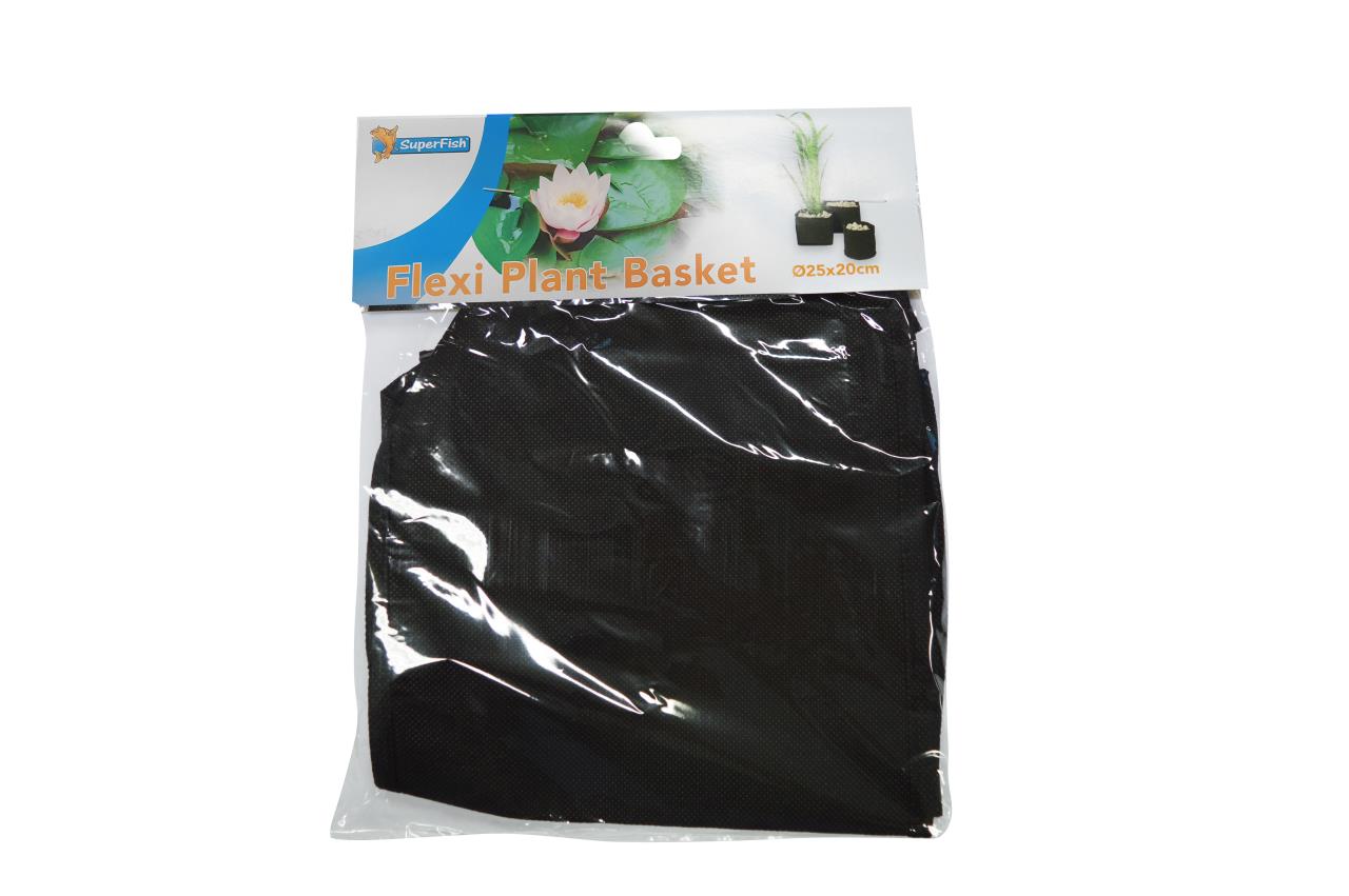 Flexible Teichkörbe für Teichpflanzen, die Körbe sind aus wasserdurchlässigem, feinmaschigem und strapazierfähigem Gewebe gefertigt.