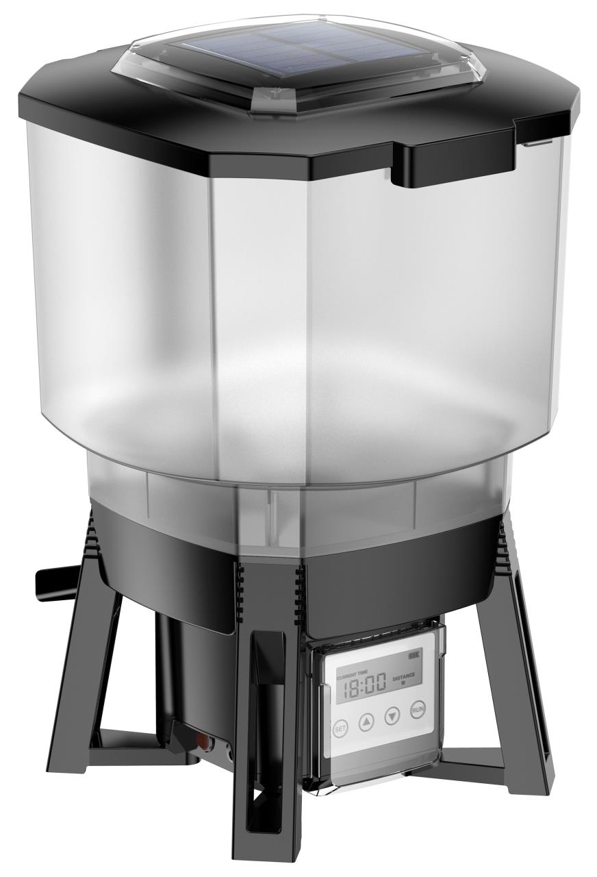 Die Dosierzeit pro Fütterung ist bis zu 6 Mal pro Tag einstellbar, 1 bis 2 Sekunden. Der Streuabstand ist ebenfalls einstellbar (1, 2 oder 3 Meter) mit einer Streuung von 120 Grad. Die Futtermenge hängt von der Art und dem Gewicht des Futters ab, mindestens ca. 30 Gramm bei 1 Sekunde Fütterung bis zu 250 Gramm pro Fütterung bei 2 Sekunden Fütterung.
