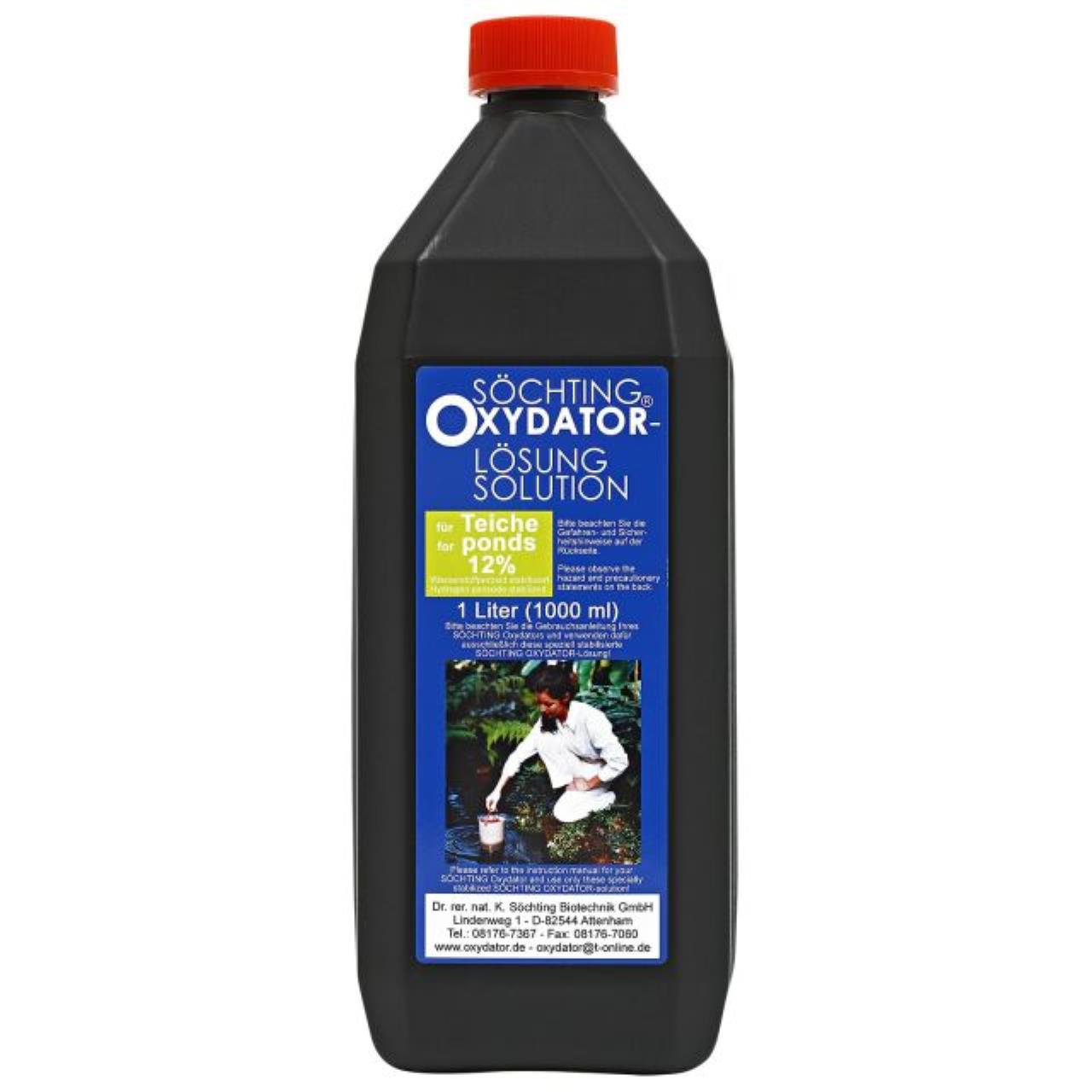 Die Söchting Oxydator Lösungen gibt es in unterschiedlichen Konzentrationen. Diese sind speziell stabilisiert und hergestellt für den ausschließlichen Gebrauch in Söchting Oxydatoren. Dies ist auf den Etiketten vermerkt und der Hersteller garantiert für den ordnungsgemäßen Betrieb der Oxydatoren auch nur bei Verwendung dieser Lösung. Bei der Anwendung der Wasserstoffperoxid-Lösung in einem Söchting Oxydator wird der Sauerstoff in das Wasser abgegeben und erhöht den Sauerstoffgehalt sowie das Redoxpotential des Wassers. Diese führt zu einer deutlichen Verbesserung der Wasserqualität.Vor Gebrauch bitte stets Kennzeichnung und Produktinformation lesen.